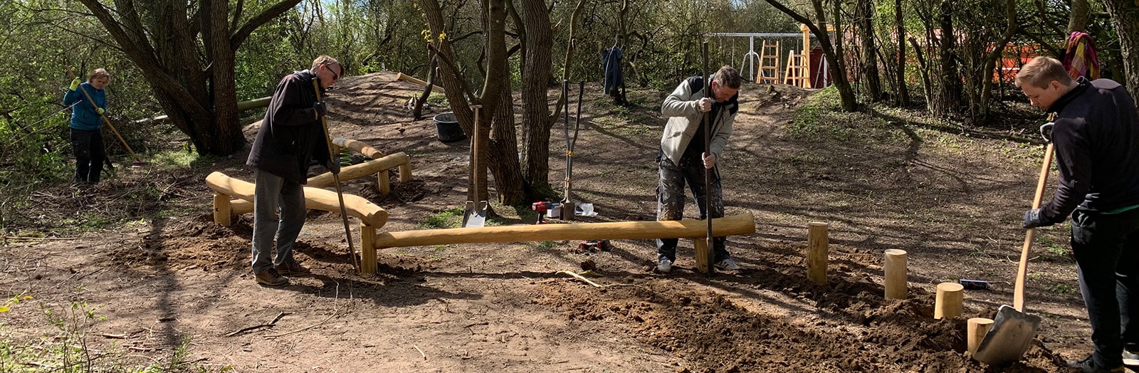 Den nuværende junglesti blev bygget af de aktive forældre i Tranbjerg i 2021. Nu har de skaffet penge til en udvidelse - blandt andet takket være hjælp fra Sparekassen Kronjyllands Garant-millionen.